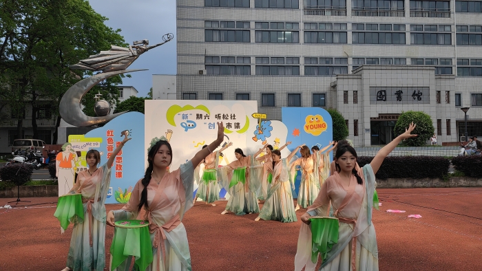 “新”期六听松社“创”市集活动以“红色文创+青春市集”为特色,设有非遗手作、红色主题剪纸等许多摊位。市集将传统文化与现代创意相结合,学生自主设计的红色IP周边、剪纸艺术等作品吸引师生驻足。青春思政课上,《不忘初心》《紫荆花盛开》和古筝《战台风节选》等节目,带领观众回溯红色历史,感悟先辈初心。《always online》和《Melody Remix》等歌曲展现青春活力,引发全场共鸣。《红豆》和《他不懂》等歌曲,表达对未来的憧憬。期间还设有自由唱环节,同学们演唱同样精彩非凡。