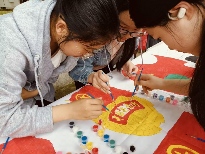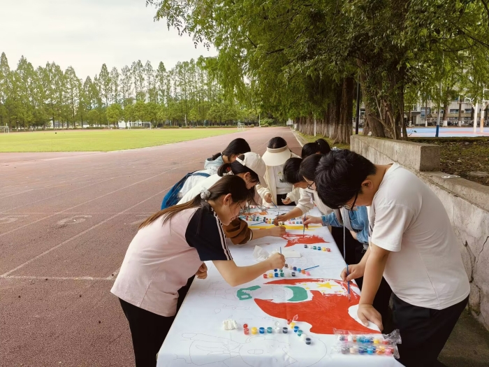 活动以“春天是情绪的容器,交换是心灵的对话”为核心理念,鼓励同学们用画笔描绘心中的春天。活动现场铺设大型画布,参与者自由选择颜色与区域,将内心的春意倾注于笔尖。或嫩绿枝芽,或繁花似锦,或晴空白云……一幅幅充满生命力的作品逐渐成型。创作环节中,同学们或专注挥洒,或低声交流,共享艺术与情感交融的独特体验,活动融入思政教育内涵,引导青年学子在丰富自我的同时,将个人成长与家国情怀紧密结合。