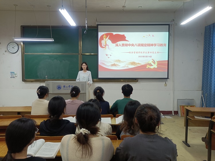 活动伊始,党支部书记汪琼霞带领全体党员学习中央八项规定的主要内容及其重要意义,并结合近年来违反中央八项规定精神的典型案例进行深入浅出的解读,同时强调中央八项规定是长期有效的铁规矩、硬杠杠,是党员必须严格遵守的行为准则,全体党员必须时刻牢记党的纪律和规矩,以身作则,发挥先锋模范作用,自觉抵制各种不正之风,营造风清气正的校园环境。随后在专题研讨环节,学生党员们围绕“如何深入贯彻中央八项规定精神学习教育,加强自身作风建设”展开热烈讨论。大家结合自身实际,分享了自己在学习和生活中践行中央八项规定精神的经验和体会,有的党员表示要从节约用水、节约用电做起,养成勤俭节约的好习惯;有的党员提出要积极参与志愿服务活动,密切联系同学,解决同学们的实际困难;还有的党员强调要时刻保持清醒的头脑,抵制各种诱惑,做到廉洁自律。此外大家还就如何在支部内形成良好的廉洁文化氛围提出了许多建设性的意见和建议。
