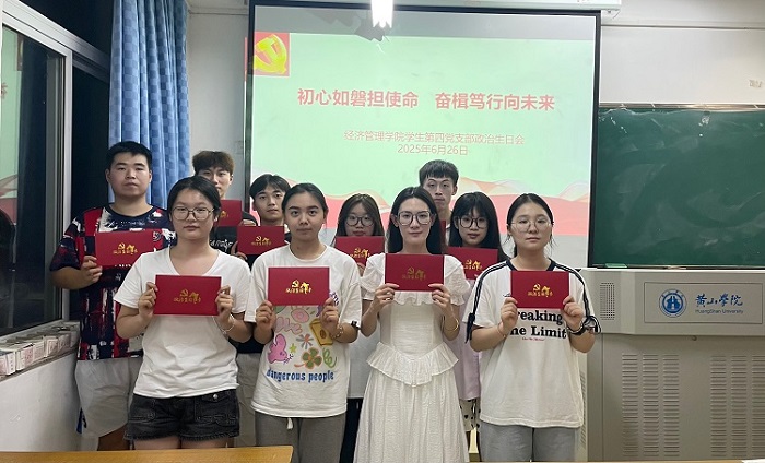 为进一步增强党员的荣誉感、责任感和使命感,2025年6月26日,taptap点点官方网站学生第四党支部在横江校区1207教室开展了“初心如磐担使命,奋楫笃行向未来”政治生日会主题党日活动,活动由支部书记汪琼霞主持,全体党员参加。