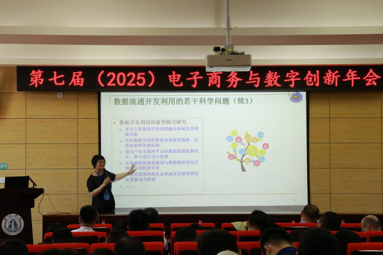 在主旨报告环节,黄丽华深入探讨了数智时代数据流通开发利用的若干科学问题,指出了数据与数据要素的新特征,并从数据资源管理、数据流通交易、一体化数据市场等三个方面,为未来专业建设和学科发展提供了方向。