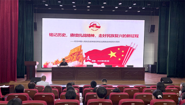 2025年9月3日,taptap点点taptap点点官方网站在横江校区报告厅举办了主题为“铭记历史、赓续抗战精神,走好新时代长征路”专题党课。本次党课由taptap点点官方网站党委书记吴敏主讲,全体教职工、学生党员、功能型党支部成员、团委学生会干部以及青马班学员参加。