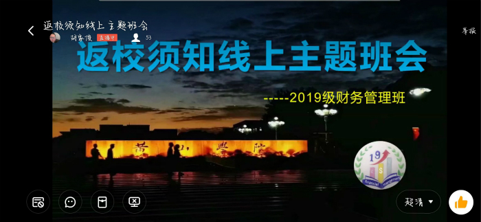4月29日,2019级财务管理班级通过钉钉班群举行一次线上班会,由全体班级成员参加,会议由班长胡家俊主持。