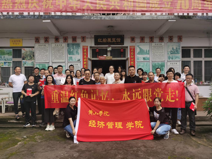 学院组织教师党员赴休宁县汊口红船展览馆,开展“重温红色记忆 永远跟党走”主题党日活动。活动邀请学院民主党派教师和教师入党积极分子一起参与。活动现场,党员们佩戴党员徽章,面对鲜艳的党旗,握举右拳,重温入党誓词,表达自己坚定的政治信念。