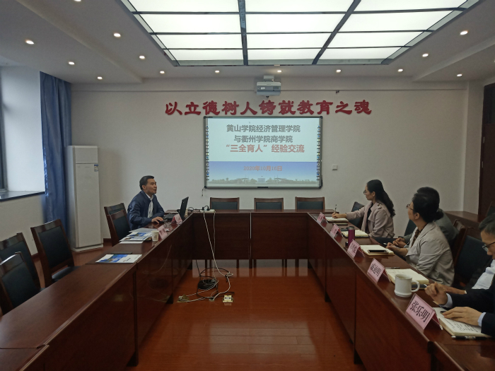 10月16日,taptap点点官方网站党委书记胡永政、团总支负责人李斌赴衢州学院商学院开展“三全育人”经验交流活动。衢州学院商学院党总支书记许玲俊、院长戚迪明等热情接待胡永政一行。