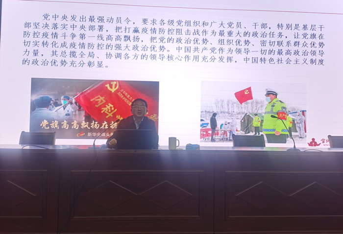汪枫从新冠疫情发生后,举国上下共同抗疫的举措以及取得的伟大成效出发,向聆听党课的学员生动阐述了中国特色社会主义制度的政治优势、体制优势、经济优势、文化优势、治理优势、对人民军队绝对领导的独特优势以及构建人类命运共同体的显著优势。汪枫指出,伟大的抗疫精神是对中国精神的生动诠释,抗疫斗争中涌现的英雄模范和感人事迹再一次向世人展示了中国人民生命至上的为民情怀、举国同心的家国情怀、舍生忘死的壮士情怀、尊重科学的求真情怀以及命运与共的天下情怀。