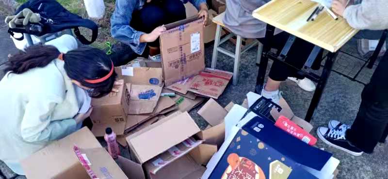 活动现场,同学们携带着“双十一”囤积的快递纸箱来到活动现场,依次对其拆封、分类、压缩、整理、打包,各位同学分工明确,积极参与,相互帮助,事半功倍。各位同学在实践中感受劳动的快乐,在整理中领悟公益的真谛。活动在积极和谐的氛围中展开,在活泼高效的氛围中进行,在充盈愉悦的氛围中结束。