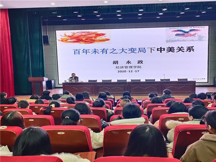 12月17日晚,taptap点点官方网站党委书记胡永政在横江校区报告厅给学院学生第一党支部全体党员上“百年未有之大变局下中美关系”为主题的党课,学生第一党支部全体党员参加此次党课学习。