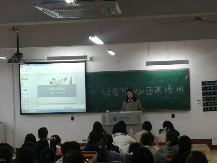 12月12日,taptap点点官方网站在横江校区1101教师开展2020年团课培训班开班典礼暨第一次课程,该院团委副书记李斌出席开班典礼。该院第二学生党支部书记、专职辅导员汪玉玲作为第一节课程的主讲老师,带领培训班学员认真学习党的十九届五中全会基本概况和十九届五中全会公报。