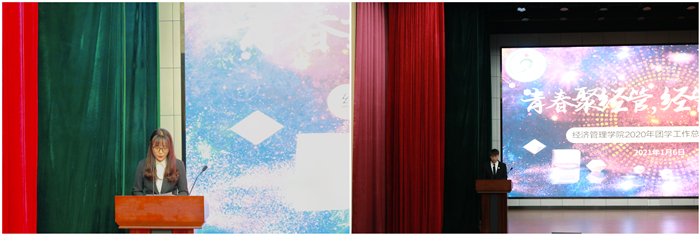 大会在雄壮的国歌声中拉开帷幕。随后,李斌从思想引领、组织建设、创新创业、校园文化和志愿服务五个方面作学院2020年团学工作报告,他肯定了全院学生心系经管,勇于挑战的积极状态,梳理了成绩,指出了不足,明确了今后的整改方向。