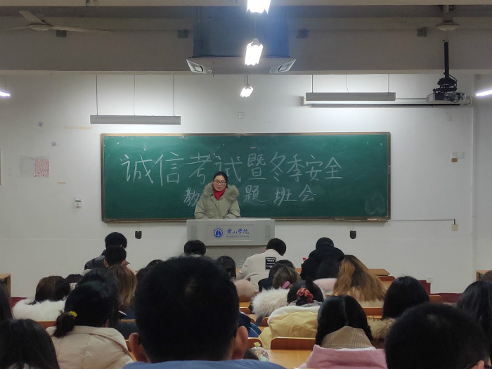 为进一步加强班风考风建设,做好冬季学生安全教育相关工作,1月7日,18会计班在横江校区1103教室召开“诚信考试动员会暨冬季安全教育”主题班会,会议由辅导员汪玉玲主持。