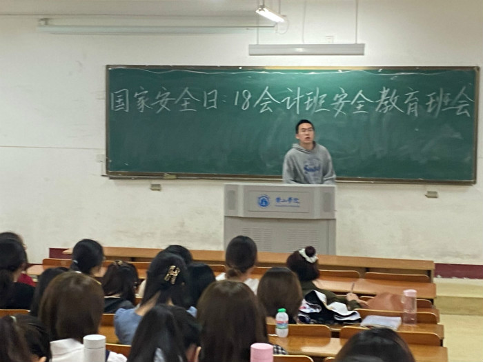 4月19日,18会计班在横江校区1224教室组织开展“第六个全民国家安全教育日”主题班会,会议由安全委员彭逍主持。