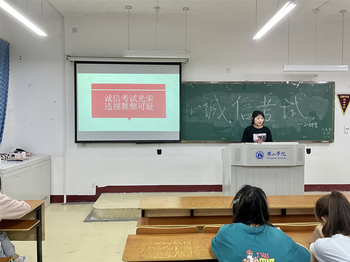 首先,李鑫同学向大家介绍了国家教育考试的要求,并宣读了《国家教育考试违规处理办法》、《教育法》、《中华人民共和国刑法》中关于考试违纪作弊,涉考犯罪等内容,使同学们充分意识到国家教育考试作弊不仅会被取消考试成绩,还将受到严格的校纪校规处分,情节严重的还要移送司法机关追究法律责任。随后,李鑫同学和大家详细讲述了国家资助贷款的内容、标准以及贷款合同中的各项义务,使同学们深刻了解了高校资助其内涵以及法律效应。同时,她倡议受国家资助的同学及时履行国家助学贷款合同,树立诚信品质,有效地将诚信教育转化为大学生自觉的素养与行为。