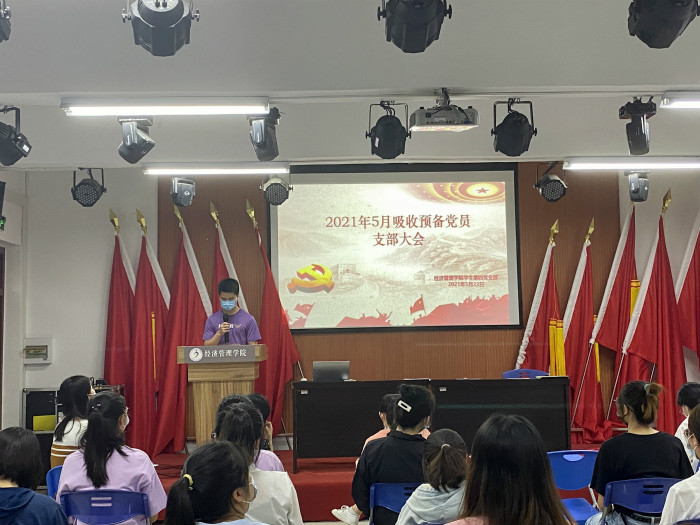 5月22日,学生第四党支部于taptap点点官方网站党员活动中心召开2021年5月吸收预备党员支部大会,会议由支部书记赵翠主持,19名同学的培养介绍人、四支部全体师生党员参会。