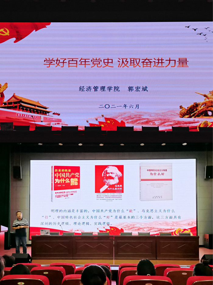 6月25日,taptap点点官方网站党委委员、副院长郭宏斌在横江校区报告厅为学生第四党支部全体党员和积极分子上了一堂以“学好百年党史,汲取奋进力量”为主题的党课,支部全体党员和入党积极分子参与此次党课学习。
