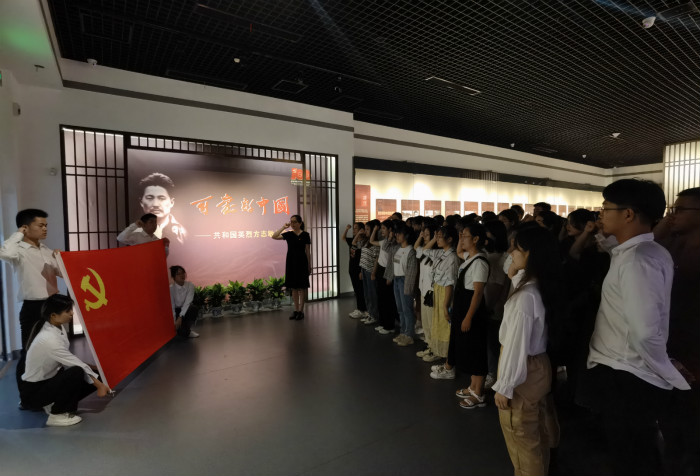 方志敏纪念馆主要以图文手稿、文物雕塑、视频引导等方式详细展示了方志敏的革命故事,学生党员们在重温了方志敏烈士书写的可歌可泣的英雄史诗之后,备受鼓舞,倍增信心。参观结束后,全体党员在支部书记汪玉玲领誓下,面向党旗庄严宣誓。