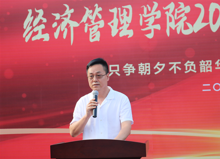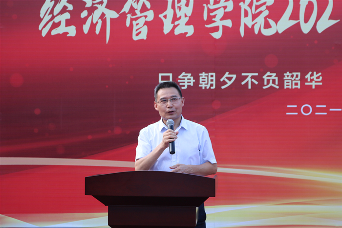 典礼上,教师代表国际经济与贸易教研室主任李茜教师,老生代表2020级市场营销班宋刚同学和新生代表2021级财务管理班杨小凡同学作了发言。