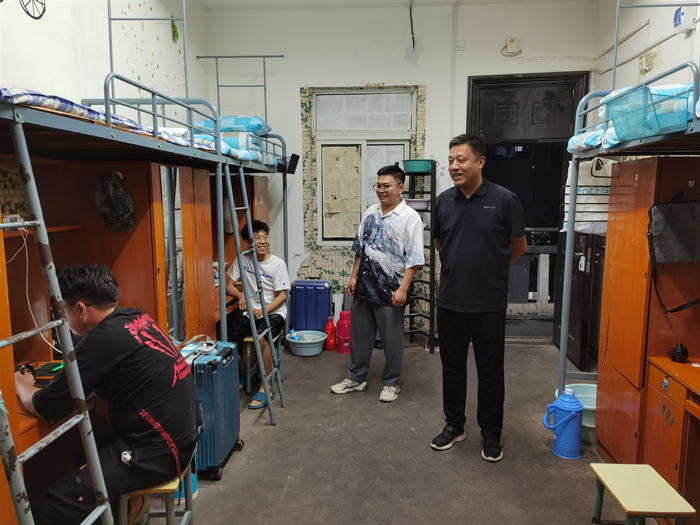 该院领导、辅导员分为四队,暖心走访了50余个宿舍,覆盖学院各专业、各年级学生。走访过程中,老师们耐心询问了学生的思想动态,查看宿舍卫生状况、宿舍学习氛围。领导老师与同学们亲切交谈,叮嘱同学们要严格遵照学校要求,做好各项防护措施,注意宿舍卫生,提高安全防范意识,同时还希望同学们在生活中相互照顾,学习中互相帮助,共同进步,珍惜大学时光,快乐学习、健康成长。