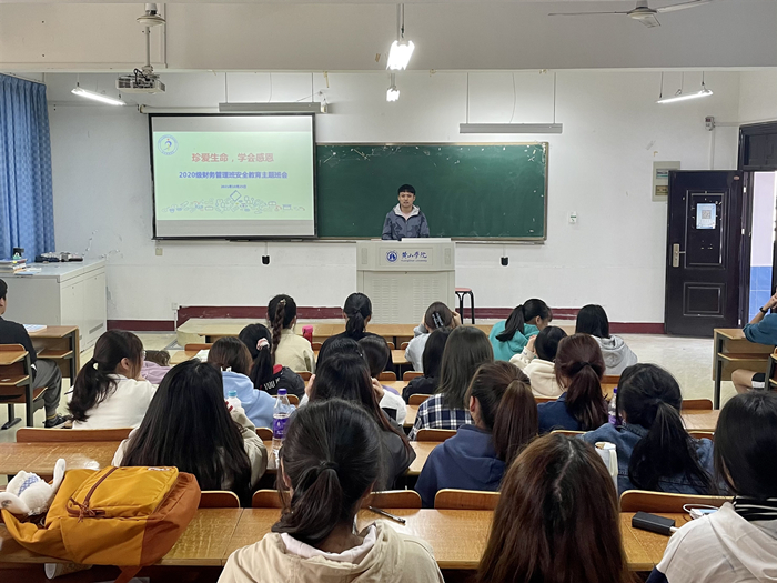 10月25日,2020级财务管理班在横江校区1401教室召开“珍爱生命,学会感恩”安全教育主题班会,此次班会由辅导员李斌主持。