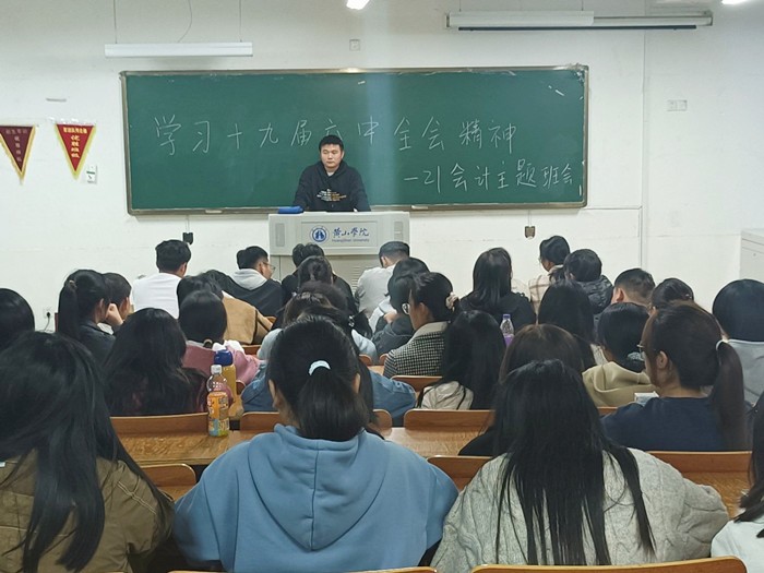 11月21日晚,21会计班在教学楼1303教室开展学习贯彻党的十九届六中全会精神主题班会,21会计班全体同学参加此次班会,班会由团支书潘长成主持。