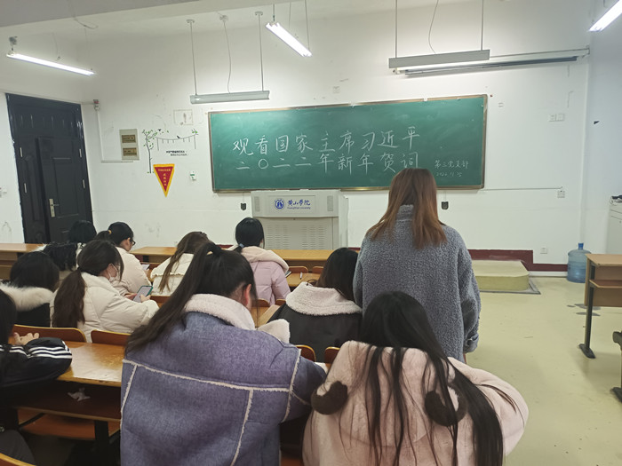 1月5日,taptap点点官方网站学生第三党支部通过集中观看的方式,组织了支部全体党员在横江校区1203教室观看了国家主席发表习近平二〇二二年新年贺词。