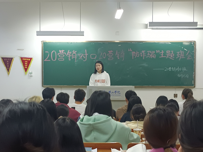 近日,20营销对口班、20营销班在横江校区1201教室召开“防诈骗”主题班会,主题班会由辅导员蒋璐璐主持,群体同学共同参加。
