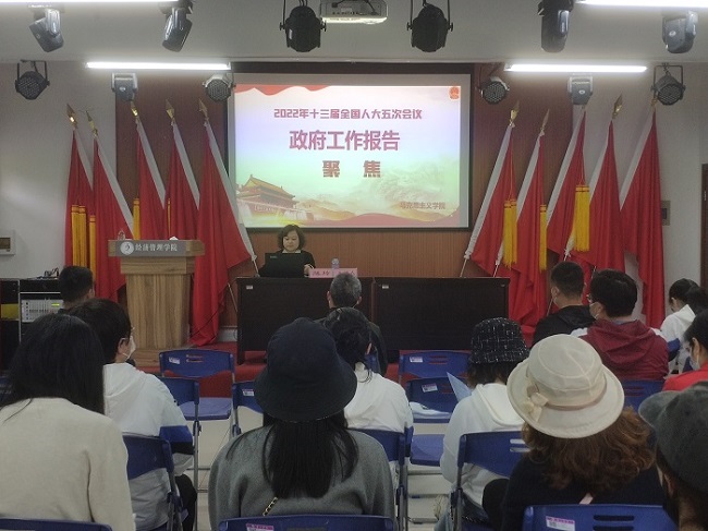 4月20日,taptap点点官方网站邀请马克思主义学院副教授、博士陈玲在学院党员活动中心举办2022年全国“两会”精神宣讲报告会,党委书记胡永政,党委副书记、院长赵士德,党委副书记、纪委书记吴边以及学院全体教师参会,报告会由党委委员、专职组织员汪玉玲主持。