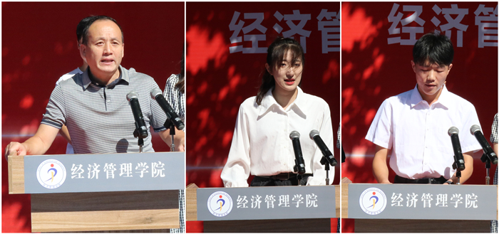 典礼上,电子商务教研室教师崔鑫博士、2021年度“安徽省优秀共青团员”占攀乾以及2022级电子商务班何海涛作为师生代表发言。
