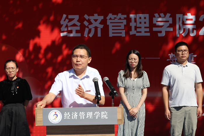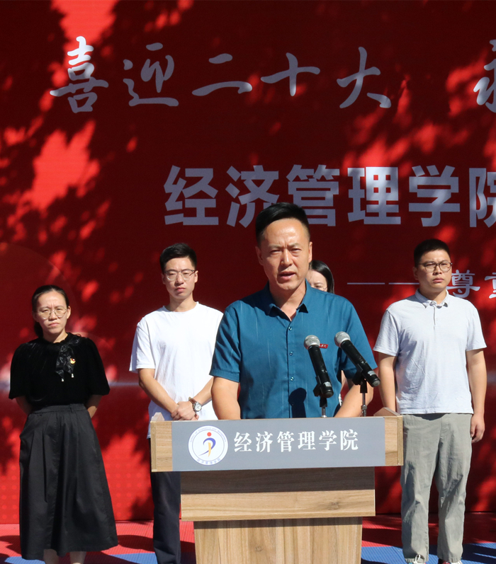 胡永政寄语新生学子要以只争朝夕不负韶华,青春立志强国有我的奋斗姿态做时代使命担当者。他强调大学学习只是人生的起点,是人生奋斗的开始,激励学生努力学习,树立共产主义崇高理想,坚定中国特色社会主义信念,积极向党组织靠拢,争做“好学之人、礼仪之人、诚信之人、经济之人和创业之人”,用“经管人精神”涵养自己生命高度与厚度。