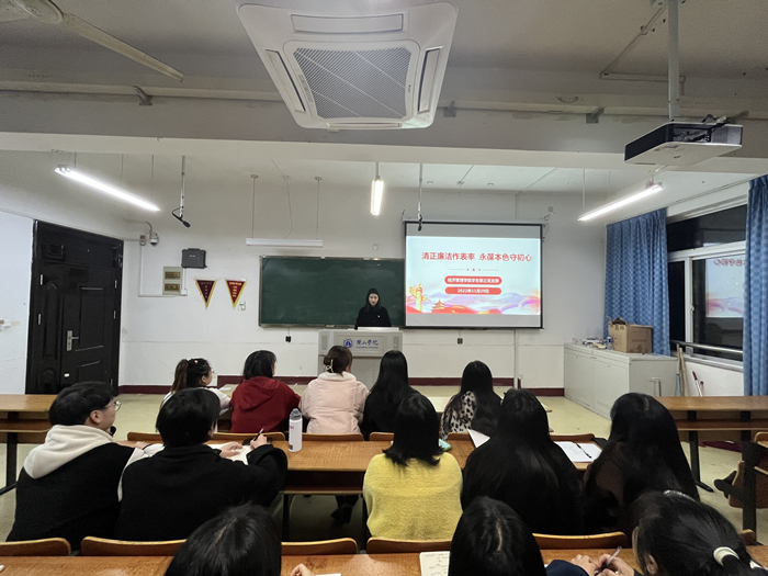 11月29日,taptap点点官方网站学生第三党支部书记蒋璐璐在横江校区教学楼1303教室为学生第三党支部党员上党课,微党课主题为“清正廉洁作表率,永葆本色守初心”。