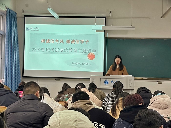 12月6日下午,2022级公共事业管理班在横江校区1107教室召开了考试诚信教育主题班会,班会由辅导员汪夏萍主持,22公管班全体同学参加。
