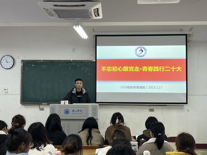 2月17日,2020级财务管理班在1223教师召开以“不忘初心跟党走,青春践行二十大”开学主题班会,会议由辅导员李斌主持。