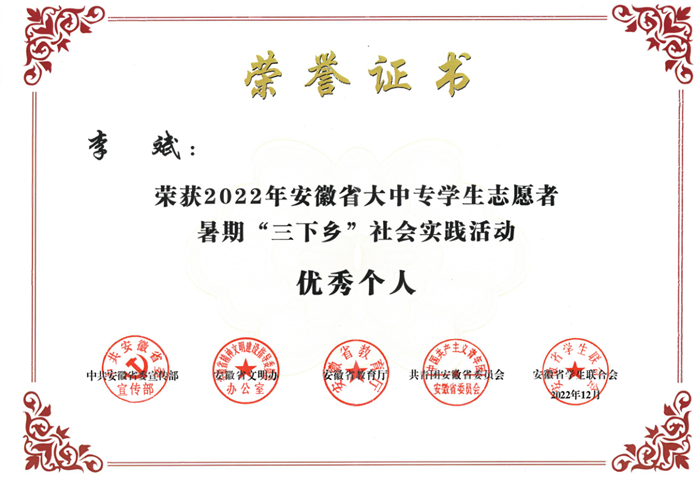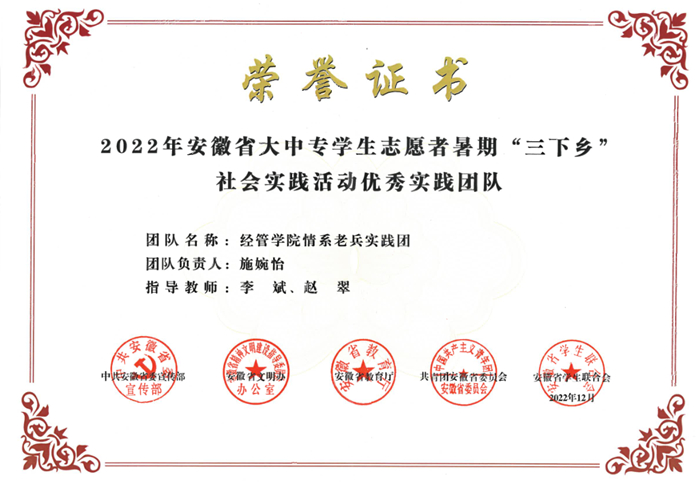 学院党委高度重视实践育人功能,指导学院团委鼓励学院师生积极参加2022年暑期三下乡社会实践活动,该院共立项成立五支队伍:全国重点团队——情系老兵实践团;省级少先队专项实践营——青年理论宣讲团;校级团队——非遗传承调研团和青春战“疫”服务团和返家乡社会实践团。各团队严格遵守属地疫情防控管理,按时按量按质完成既定工作,工作成功显著。学院暑期三下乡活动多次被中国社会报、中国双拥网、中青校园、安徽学联、安徽日报、安徽财经网、安青网、中安在线、黄山日报、黄山在线等各大媒体报道。