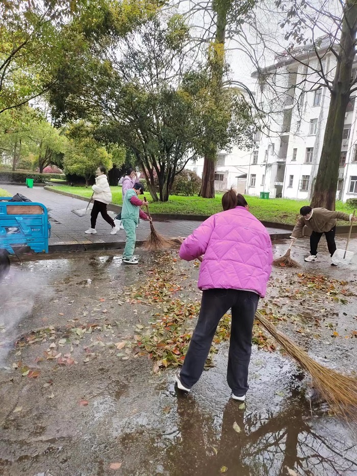 随后,学生党员们走进校园,共同参加第二、三党支部联合校园物业开展的“校园志愿清扫”活动,参与校园清洁美化环境工作。活动中,大家精神饱满、齐心协力,使校园环境得到净化。此次志愿活动的开展,同学们深刻体会到了校园清洁工人的艰辛,进一步践行雷锋志愿服务精神。