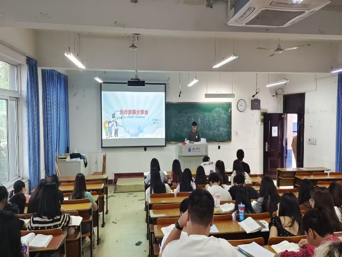 5月21日上午,2021级市场营销班在横江校区1101教室开展“反诈故事分享会”主题活动,21营销班全体同学参加。