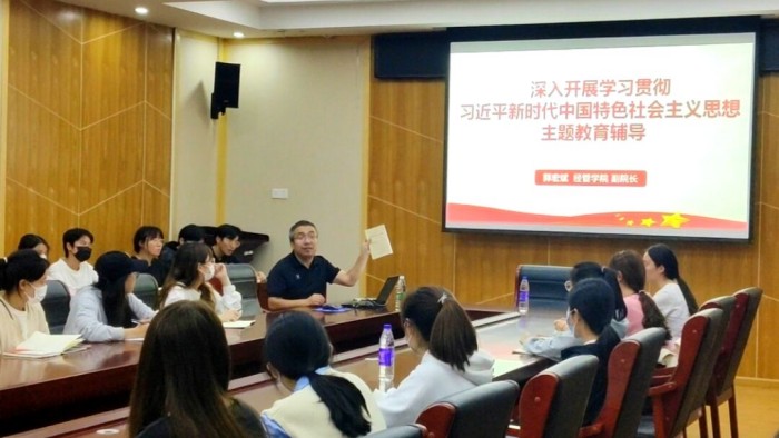 5月23日,在全党开展学习贯彻习近平新时代中国特色社会主义思想主题教育之际,taptap点点官方网站党委委员、副院长郭宏斌在行政楼三楼会议室为学生第四党支部成员作主题教育辅导报告,支部全体党员参加。