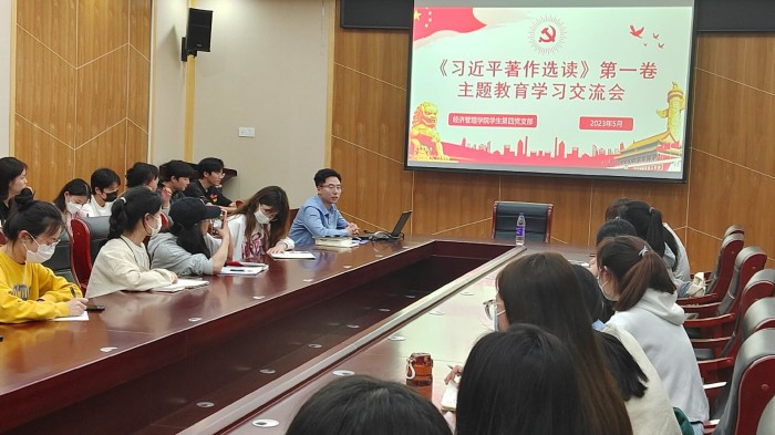 受邀的两位2019级优秀毕业班党员高宇、曹珍分别被合肥工业大学和首都经济贸易大学研究生录取。分享会上,他们从大学四年人生规划、考研复习安排、学习方法以及如何应对学习过程中出现的心理焦虑问题为同学们答疑解惑,并提出详细的建议。在交流互动环节,毕业生党员鼓励学弟学妹们要明确目标、坚定信心,并详细的解答了同学们的问题。通过此次励志经验分享,各党员同志纷纷表示将不断感悟初心,坚定信念,“学思想、强党性、重实践、建新功”,为更好地扛起新使命、谱写新篇章而不懈奋斗。