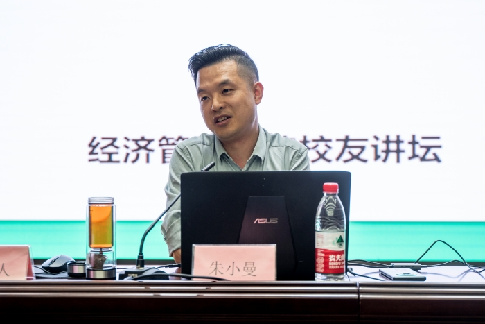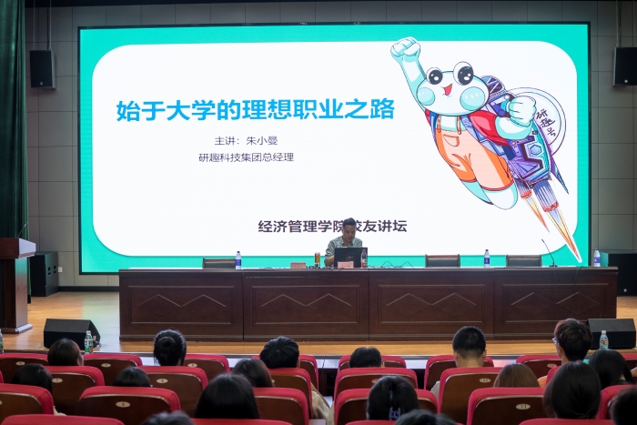 分享会上,朱小曼校友以《始于大学的理想职业之路》为主题,从大学职业规划、就业创业经历和目标对人生的影响三个方面,讲述了自己的创业体会。他鼓励同学们在大学期间,珍惜优越的学习环境,做好人生规划,努力学习专业知识,积极参加各类学科竞赛,积累丰富的经验和荣誉,为今后就业创业打下良好的基础。最后,他通过自己的亲身经历强调了目标对于一生的重大影响,希望同学们无论做什么,目标必须明确,行动必须果断,这样才能离成功更近一步。