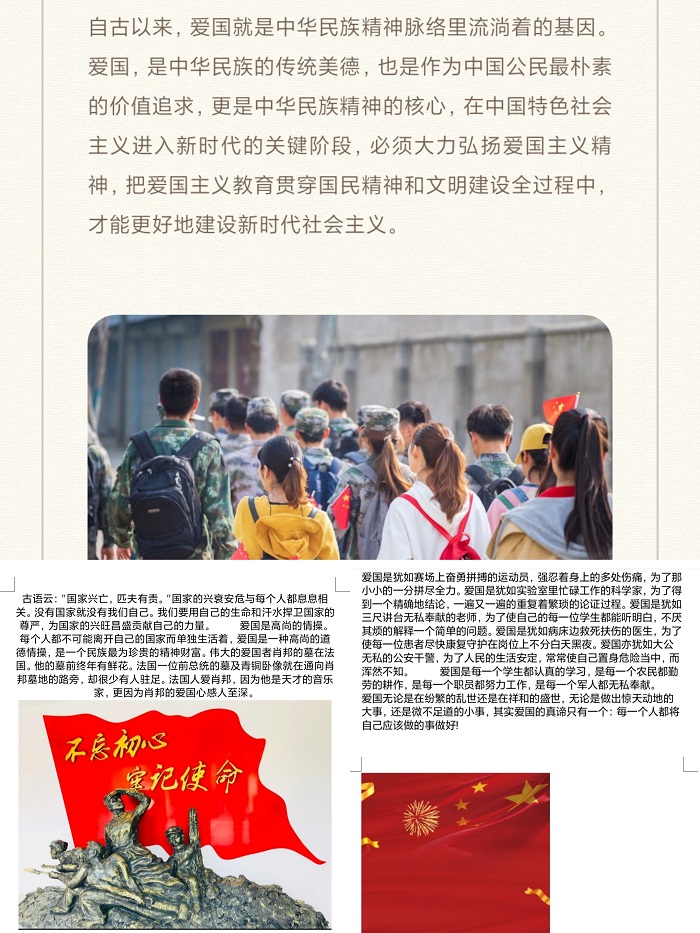 线上开展以“坚定理想 爱国教育”为主题的微信推文设计活动,引导我院学生自觉从党的重大成就和历史经验中增长智慧、增强信心,提升学生的使命感和责任感,倡导学生利用新媒体抒发对党和祖国的热爱,用青春唱响强国有我的时代强音。