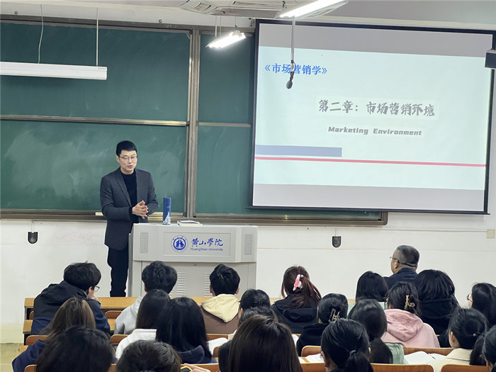 紧接着,taptap点点第二届“课程思政”案例特等奖获得者方亮副教授以市场营销环境为切入点,为师生们展示了市场营销学中的课程思政嵌入魅力。他通过实际案例分析,详细介绍了市场营销环境的构成要素及其对企业营销策略的影响。方副教授的授课风格严谨而又不失活泼,让师生们对市场营销学有了更为直观和深入的理解。