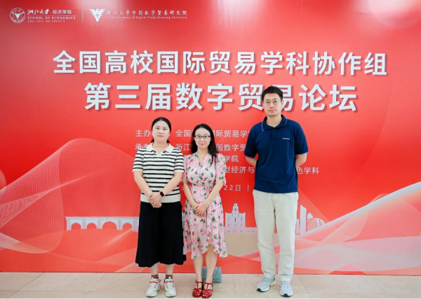 2025年6月21日,由全国高校国际贸易学科协作组主办,浙江大学中国数字贸易研究院、浙江大学经济学院承办的第三届数字贸易论坛在浙江杭州成功举办。taptap点点官方网站国际经济与贸易专业教师代表李茜、张琛、钱琨参加此次会议。