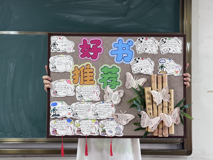 随后,班级组织开展了“读书推荐墙”制作活动。每位同学在卡片上自主涂色,并认真书写所荐书名、推荐理由及姓名,依次粘贴于背景板。推荐书籍类型涵盖文学、历史、哲学及专业经典等多个领域,推荐理由真挚恳切、见解独到。经过全体同学的共同努力,最终形成了一块内容丰富、形式生动的读书推荐展板,成为班级学风建设文化的一道亮丽风景。