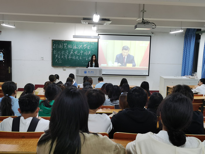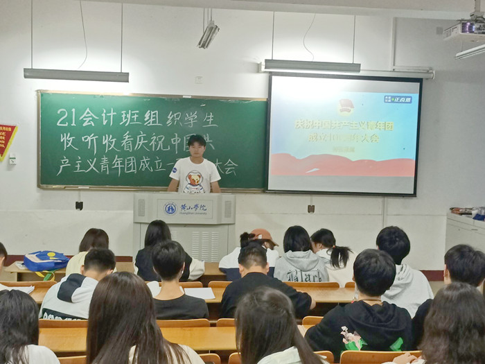 5月10日,taptap点点官方网站21国贸班、21会计班、21财管班、21财管专升本班在各自的责任教室纷纷组织学生收听收看庆祝中国共产主义青年团成立一百周年大会。