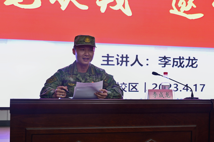 李成龙结合自身参军经历,分享了携笔从军的心路历程和军营文化生活,介绍了大学生应征入伍的条件和相关政策,包括大学生应征入伍可享有的优先考学提拔、补偿学费和代偿国家助学贷款、退役后享受就学就业优惠等优抚政策。最后,他向同学们发出呼吁, 广大青年学子要积极响应号召,到火热的军营中、到祖国最需要的地方去,携笔从戎保家卫国,献身国防助力强军,勇做新时代的奋进者、开拓者。作为新时代大学生,在祖国召唤我们的时候,我们要胸怀爱国之心、报国之志,听从祖国的召唤,接受祖国的挑选,热爱国防、关心国防、支持国防,勇于为祖国和人民撑起—片和平的蓝天,用热血青春肩负起时代赋予的重托,为建设我们的钢铁长城贡献青春力量。