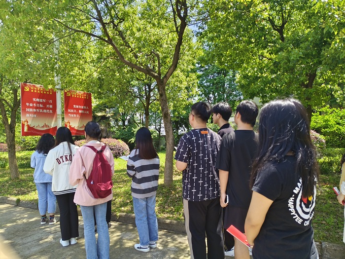 活动分为一个主线任务和三个支线任务,主线任务是校园标语悟精神,参与者需在校园内寻找体现红色基因的标语并进行拍照打卡。拍照打卡后,根据标语内容撰写相应感悟,体会字里行间的精神文化。支线任务共包括三个趣味活动,分别是“送鸡毛信”、“党史知识竞赛”和“他是谁”,同学们完成所有任务打卡后上传到“易喵喵”进行签到,即算过关。活动中,同学们热情高涨,通过打卡环节学习了党的二十大精神,筑牢新时代青年理想信念,勇于担当历史使命。