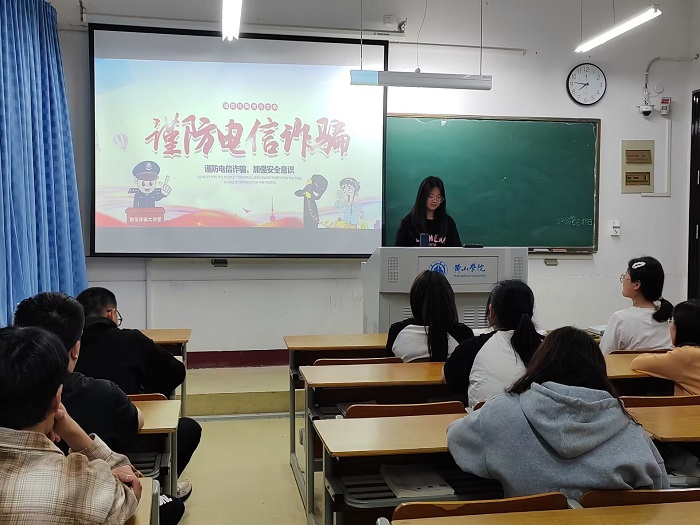 5月5日下午,2022级公共事业管理班在横江校区1107教室开展“预防电信诈骗,安全伴我同行”主题活动。本次活动由易班班长孟利芳主持,22公管班全体同学参加。