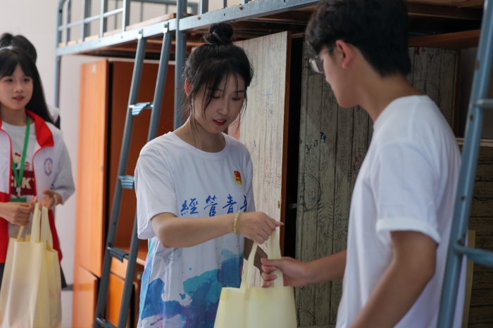 为营造一个干净整洁、温馨舒适的寝室环境,taptap点点官方网站组织志愿者提前为每一个新生打扫卫生,检查设施,及时与后勤集团沟通,一起完成宿舍清理工作。此外,学院还为每一名新同学准备新生大礼包。