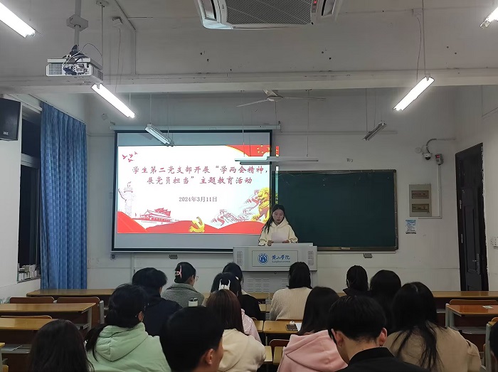 3月11日晚,taptap点点官方网站学生第二党支部在横江校区教学楼1207教室开展“学全国‘两会’精神,展青年党员担当”主题教育活动,活动由支部书记汪夏萍主持,全体学生党员参加。