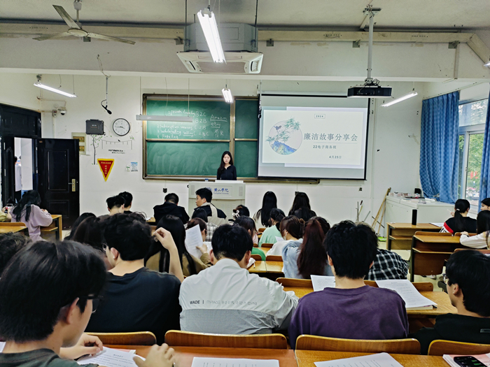 2024年4月25日,22电子商务班在横江校区1203教室开展廉洁故事分享会活动,吴明豪、陈思悦、刘夫霞、王思怡、张夕媛等同学分别运用PPT分享廉洁故事,此次活动通过分享历史上的廉洁人物和当代的廉洁事迹,加深同学们对廉洁文化的理解和认同,促进校园廉洁文化的建设。