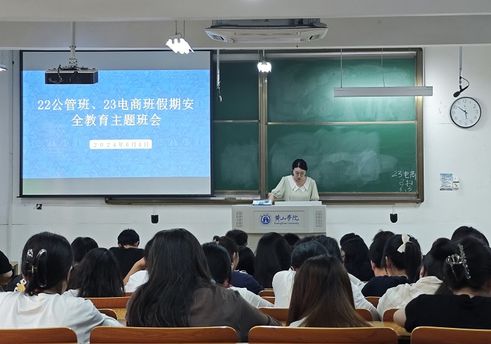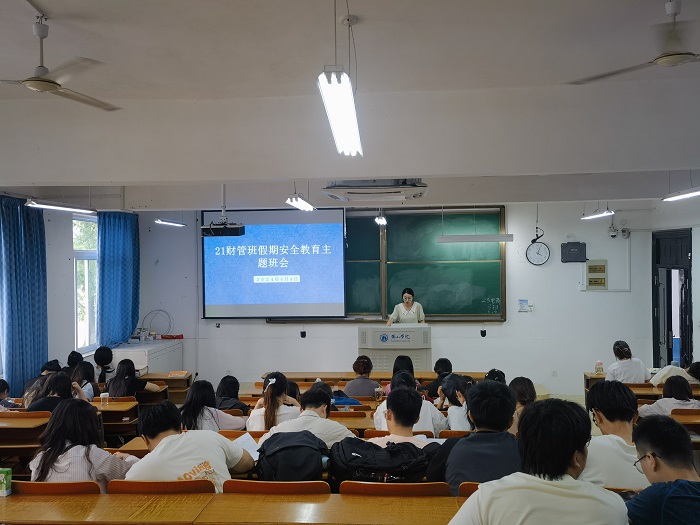 6月3日-4日,21财管班、21会计班、21国贸班、22公管班、23电商班先后在横江校区1201教室召开假期安全教育主题班会,班会由辅导员汪夏萍主持,各班级全体同学共同参加。